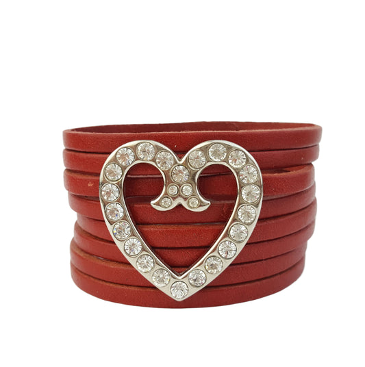 Bracelet: Genuine Leather Cuff with Crystal Heart Concho