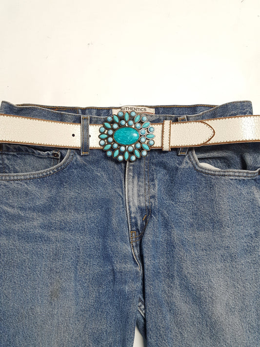 Belt: Western Floral buckle w. Vintage Cream Leather Strap