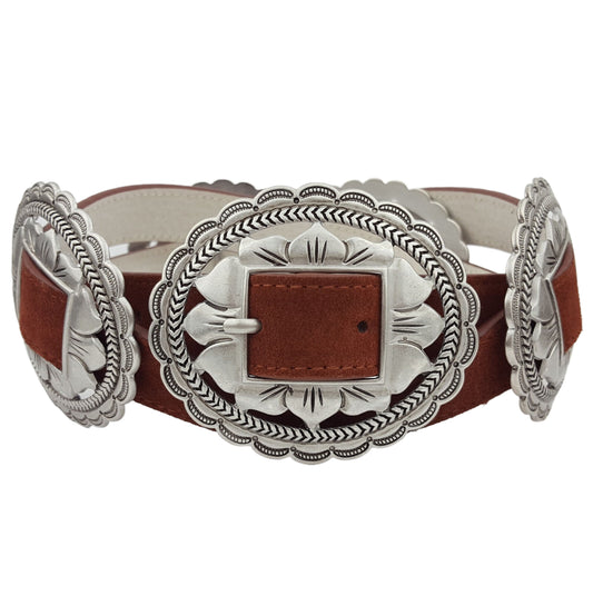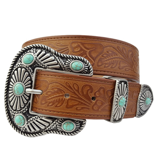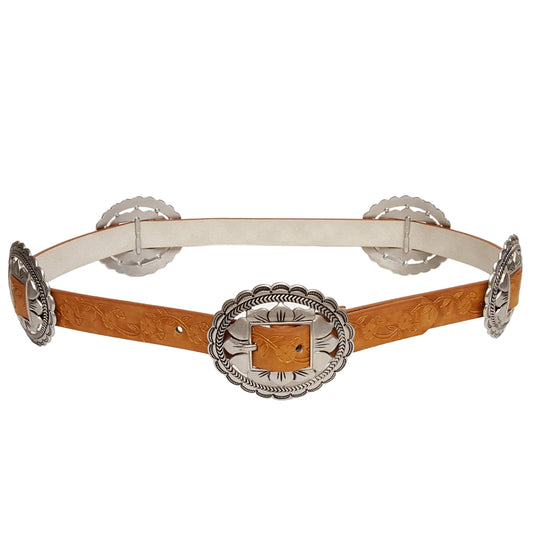 Belt: Western-Inspired Concho Belt in Floral Embossing Belt