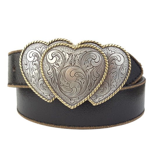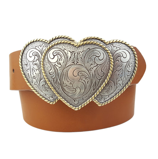 Belt: Western Triple Heart Buckle in Vintage Leather belt