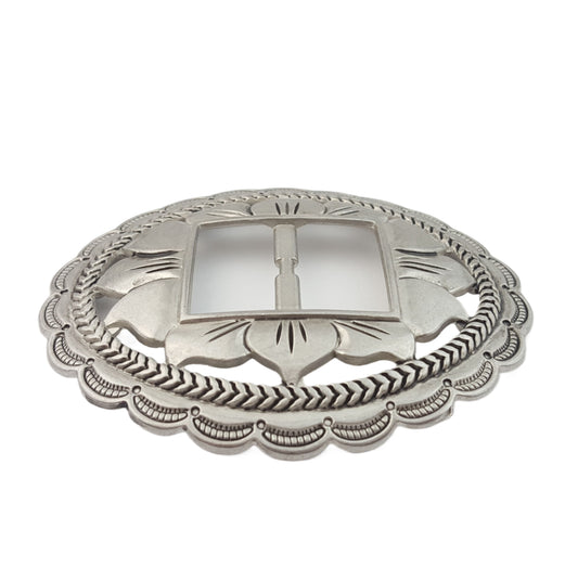 Buckle: Oval Western-Inspired Buckle with Floral Design