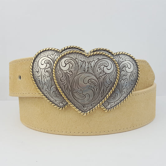 Belt: Western 3-Hearts Buckle w. Genuine Suede Belt