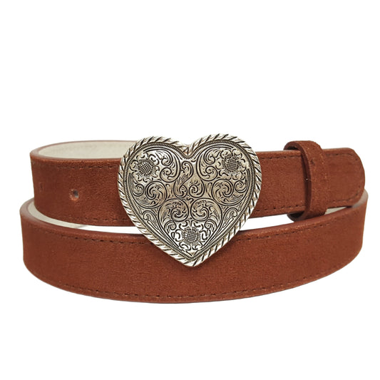 Belt: Western Heart Buckle w. Genuine Suede Belt