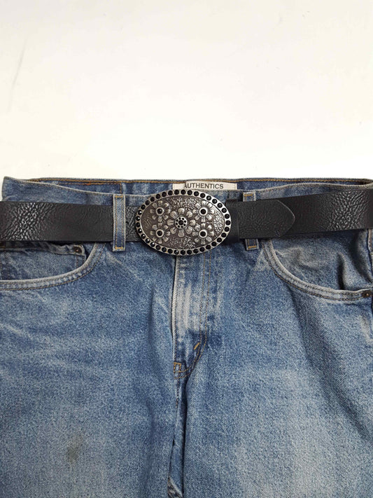 Belt Sale: Oval Black Crystal Floral Buckle Belt