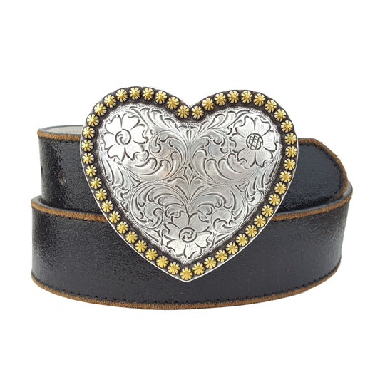 Belt: Western Heart Buckle w. Genuine Suede Belt