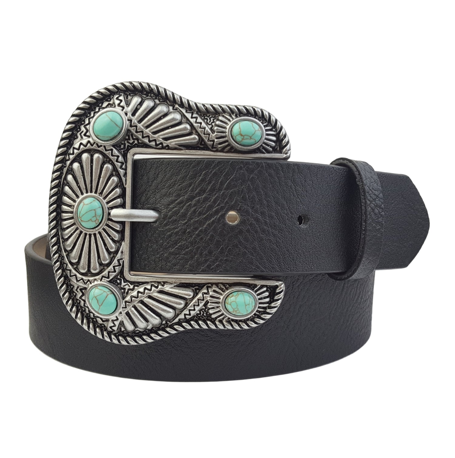 Belt: Genuine Suede Belt with Western Silver Buckle set
