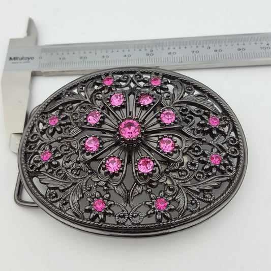 Buckle: Oval Flower Pattern Crystal Belt Buckle