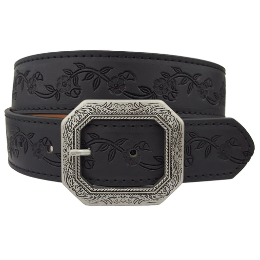 Belt: Trendy Floral Tooled Belt with a silver floral etched buckle