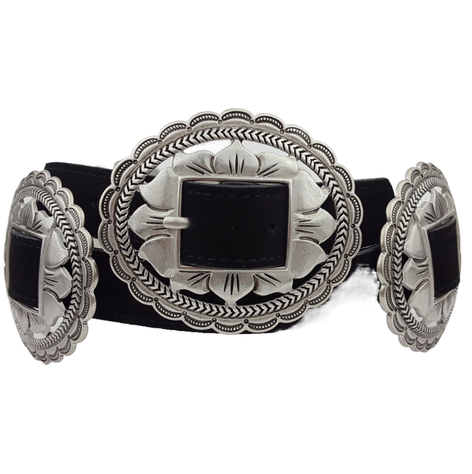 Belt: Western 3-Hearts Buckle w. Genuine Suede Belt