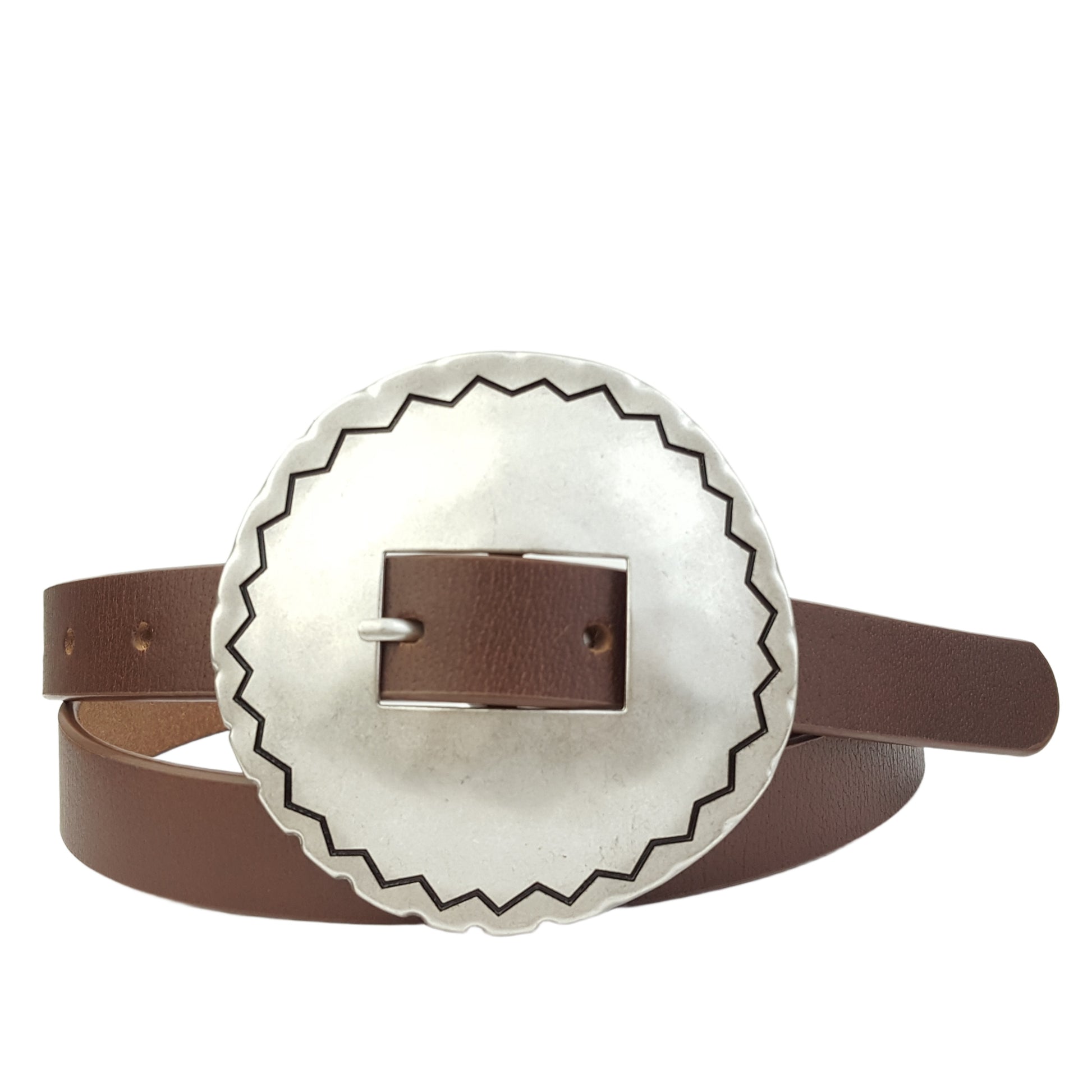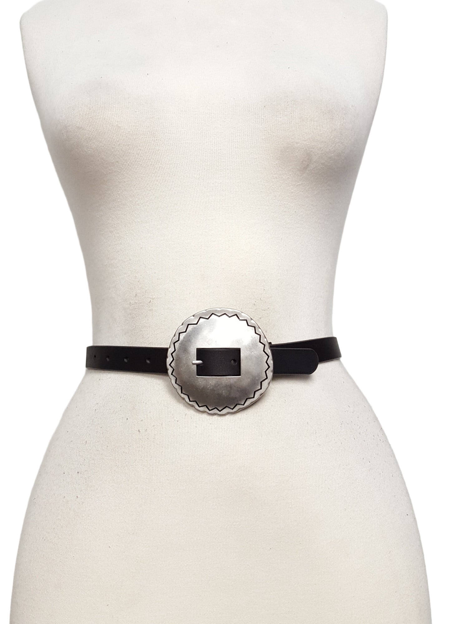 Belt: Big Silver Coin Buckle in skinny genuine leather belt