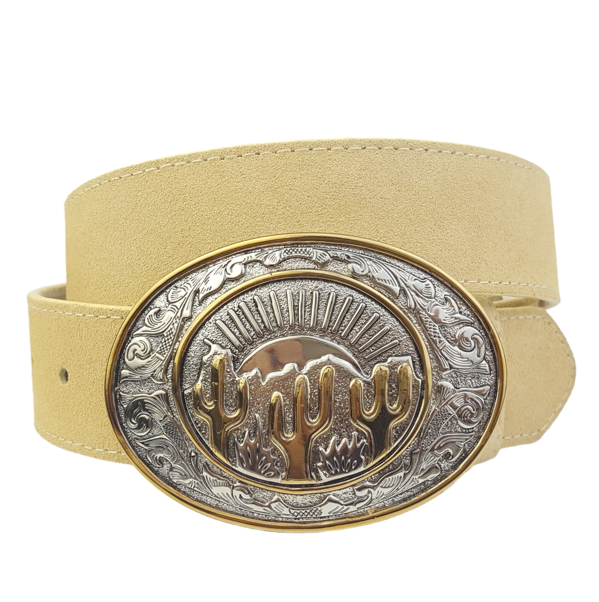 Belt: Genuine Suede Belt with Western Theme Cactus Buckle