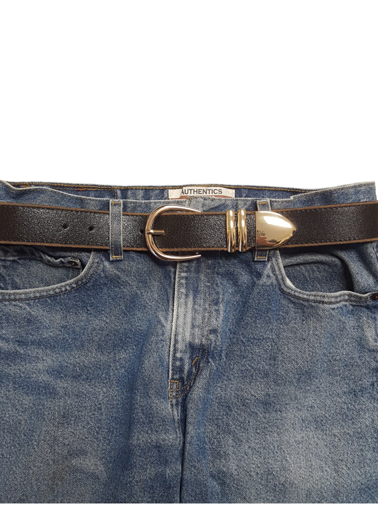 Belt: Vintage Leather belt with Shiny Gold Buckle set