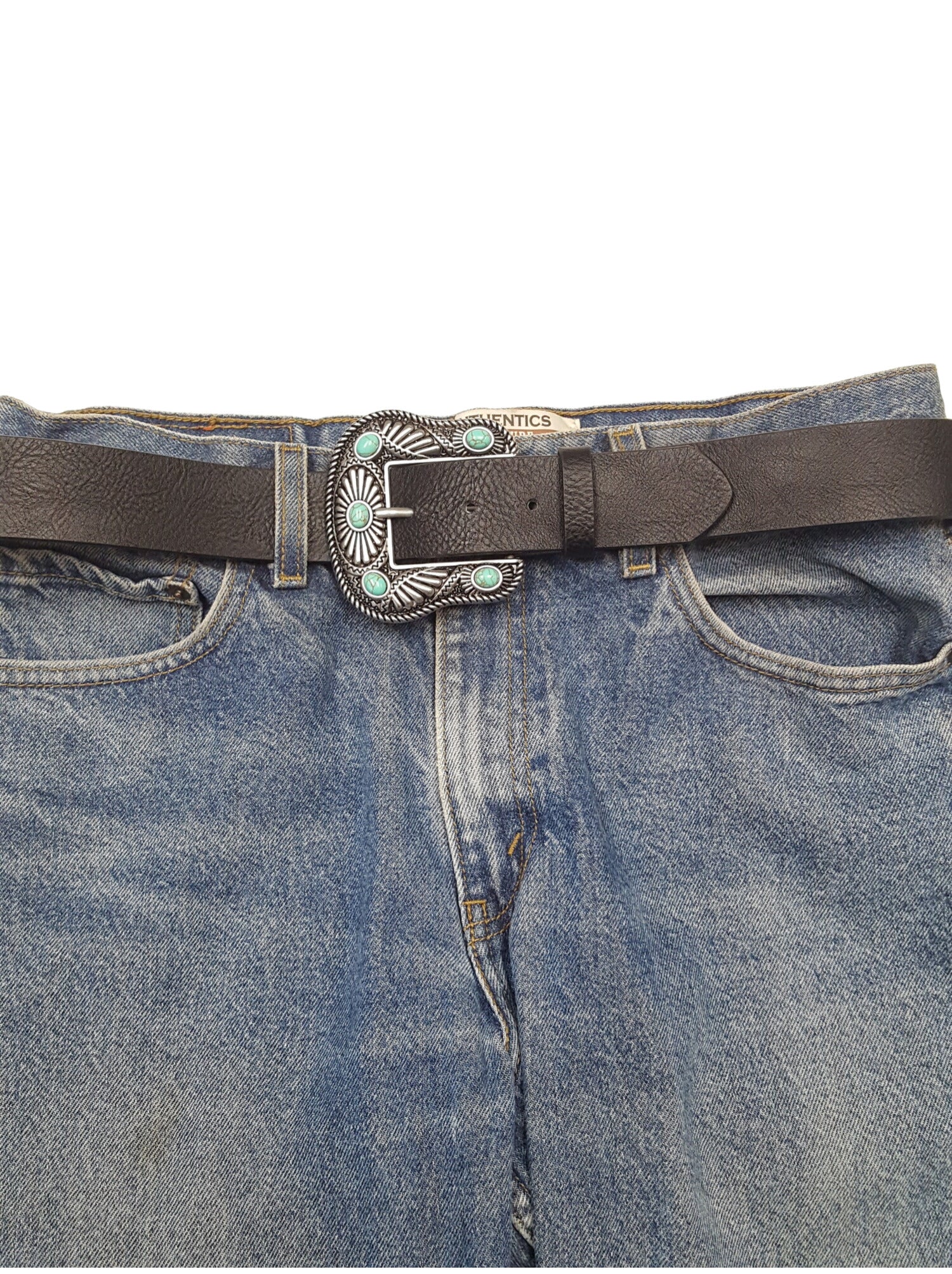 Belt: Western-Inspired Buckle Belt w. stones