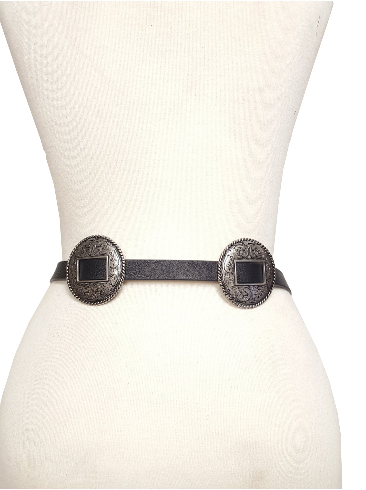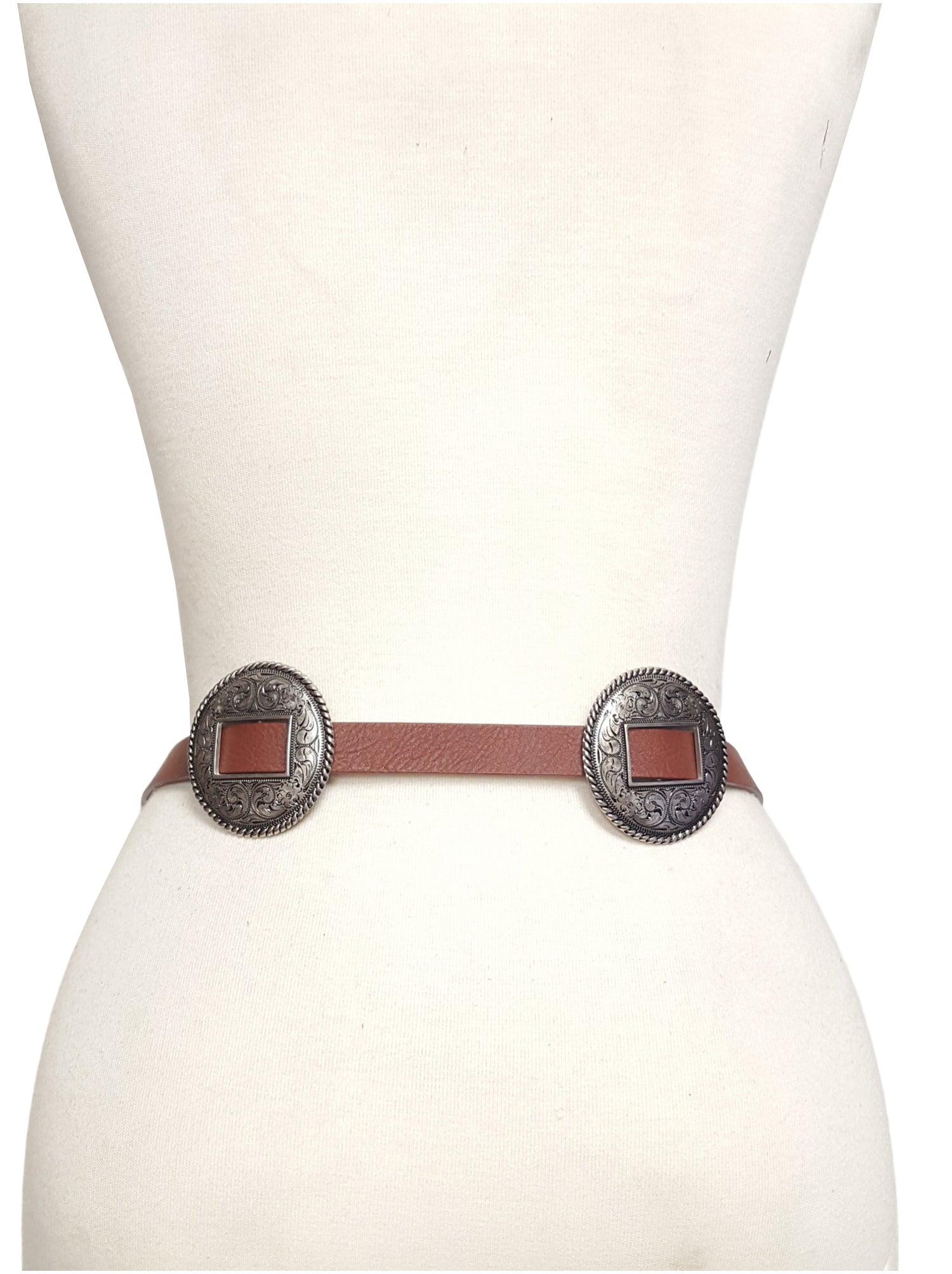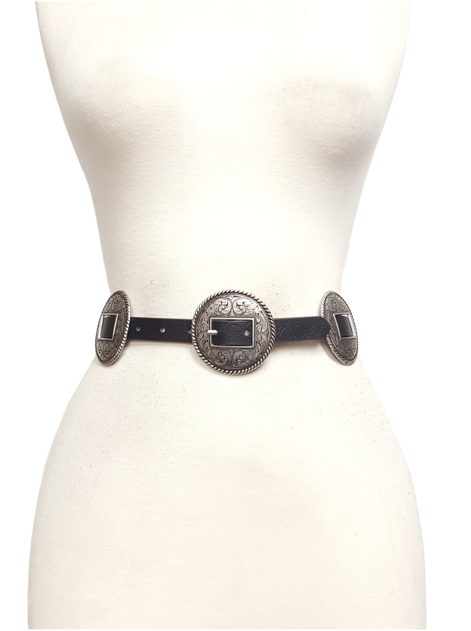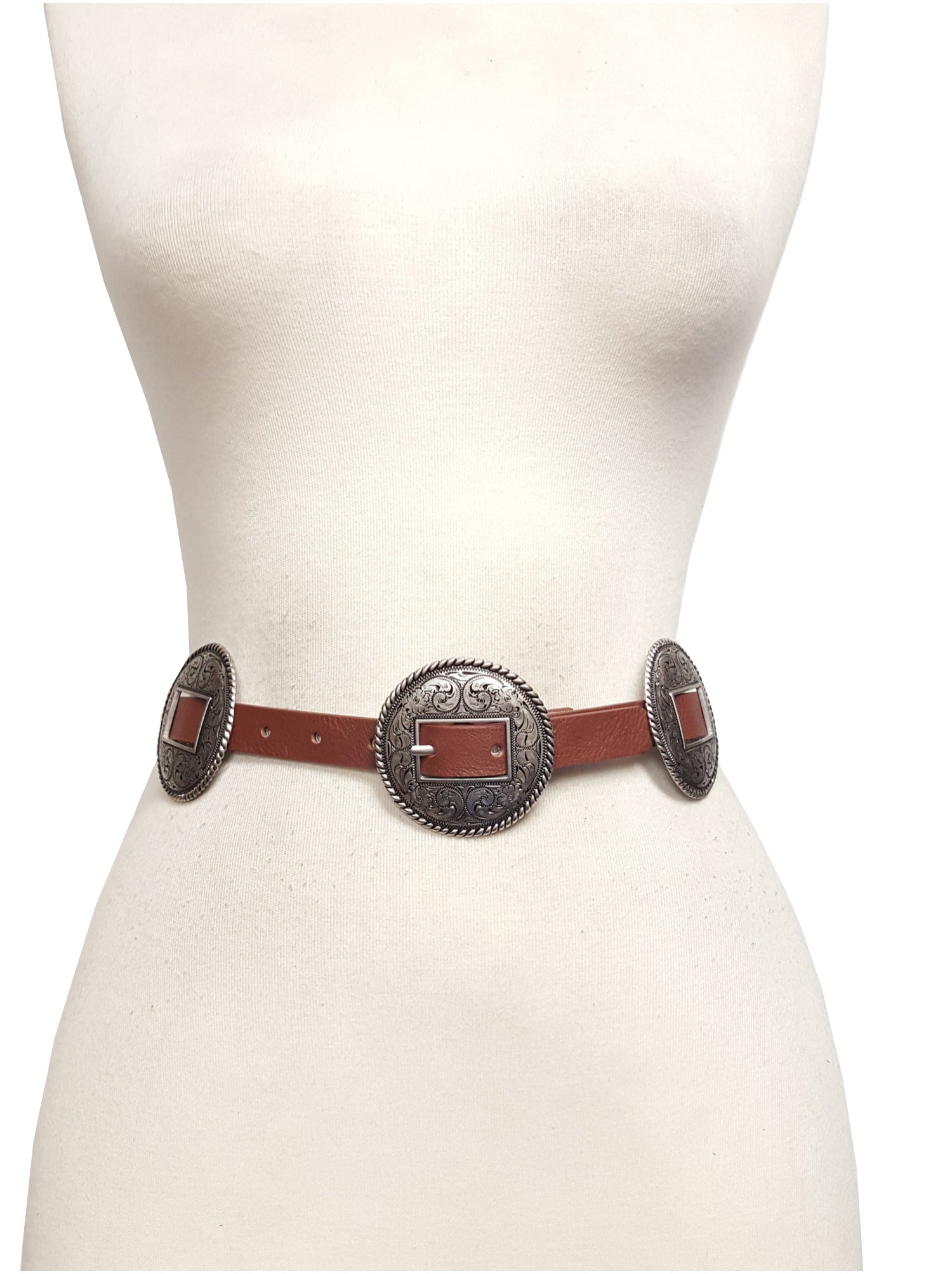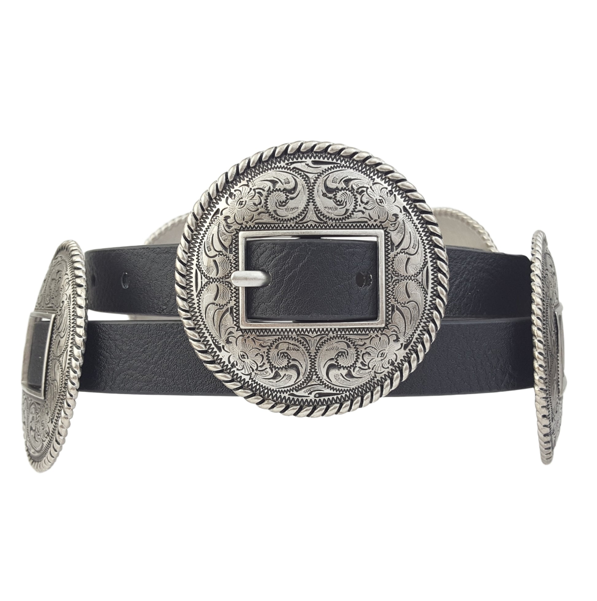 Belt: Western-Inspired Matching Round Buckle and Concho Belt