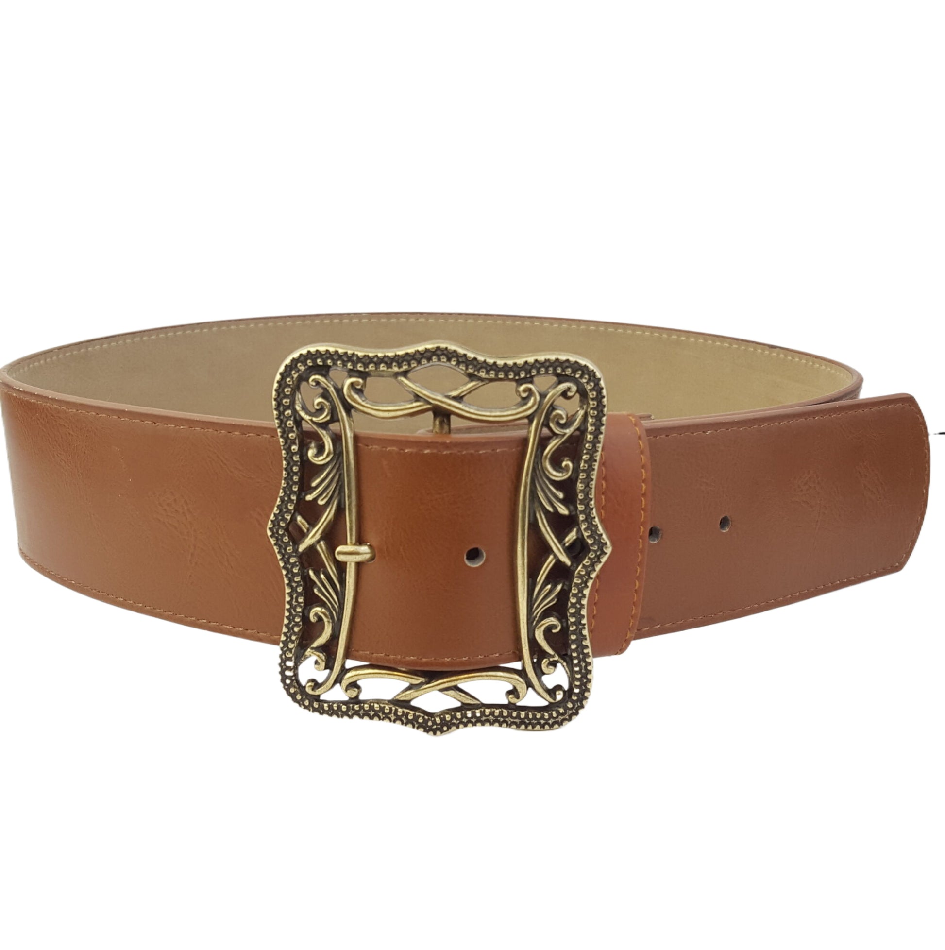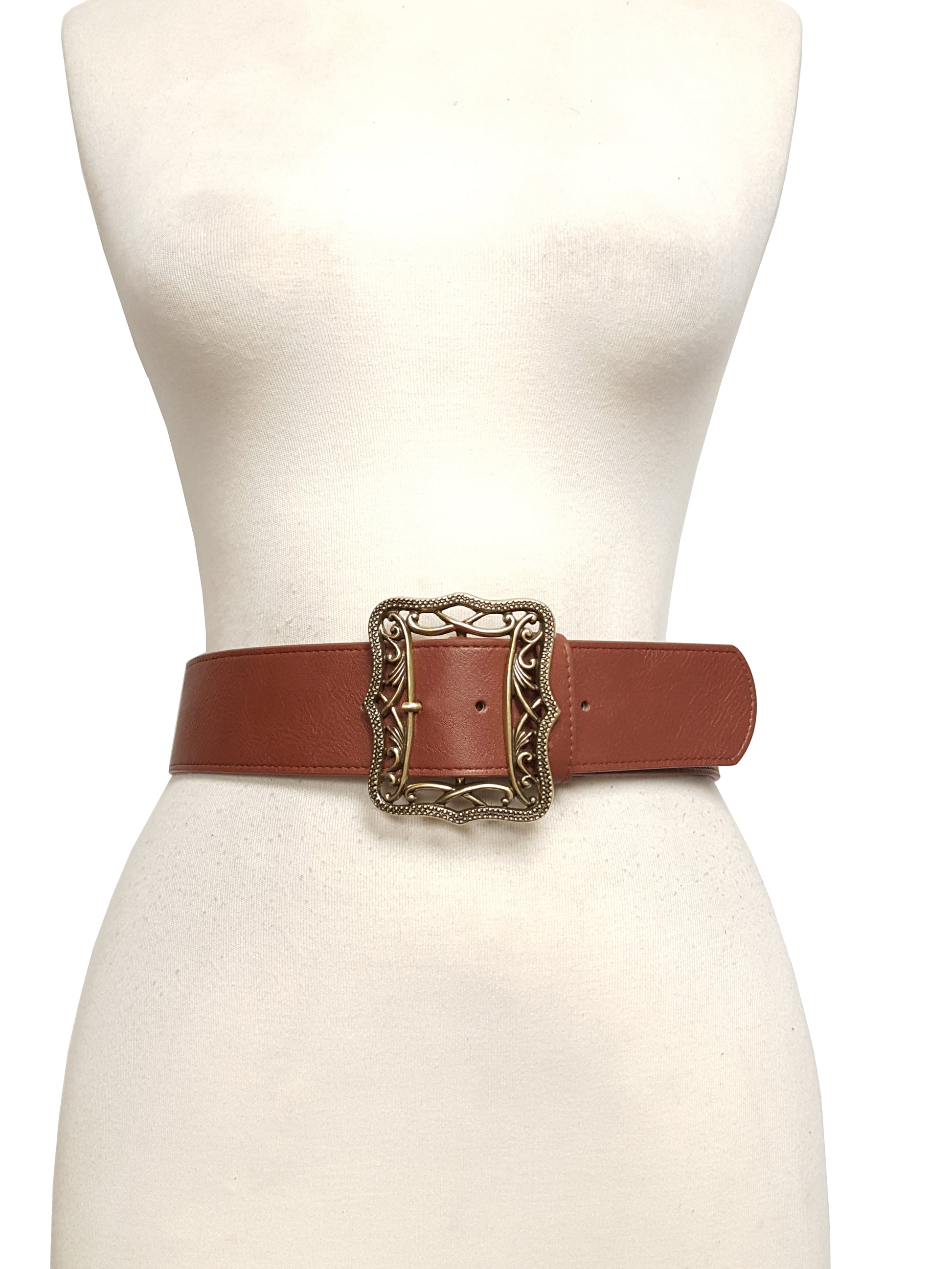 2.2" ( 55 mm) in width, w. unique filigree cutout style buckle in brass finish