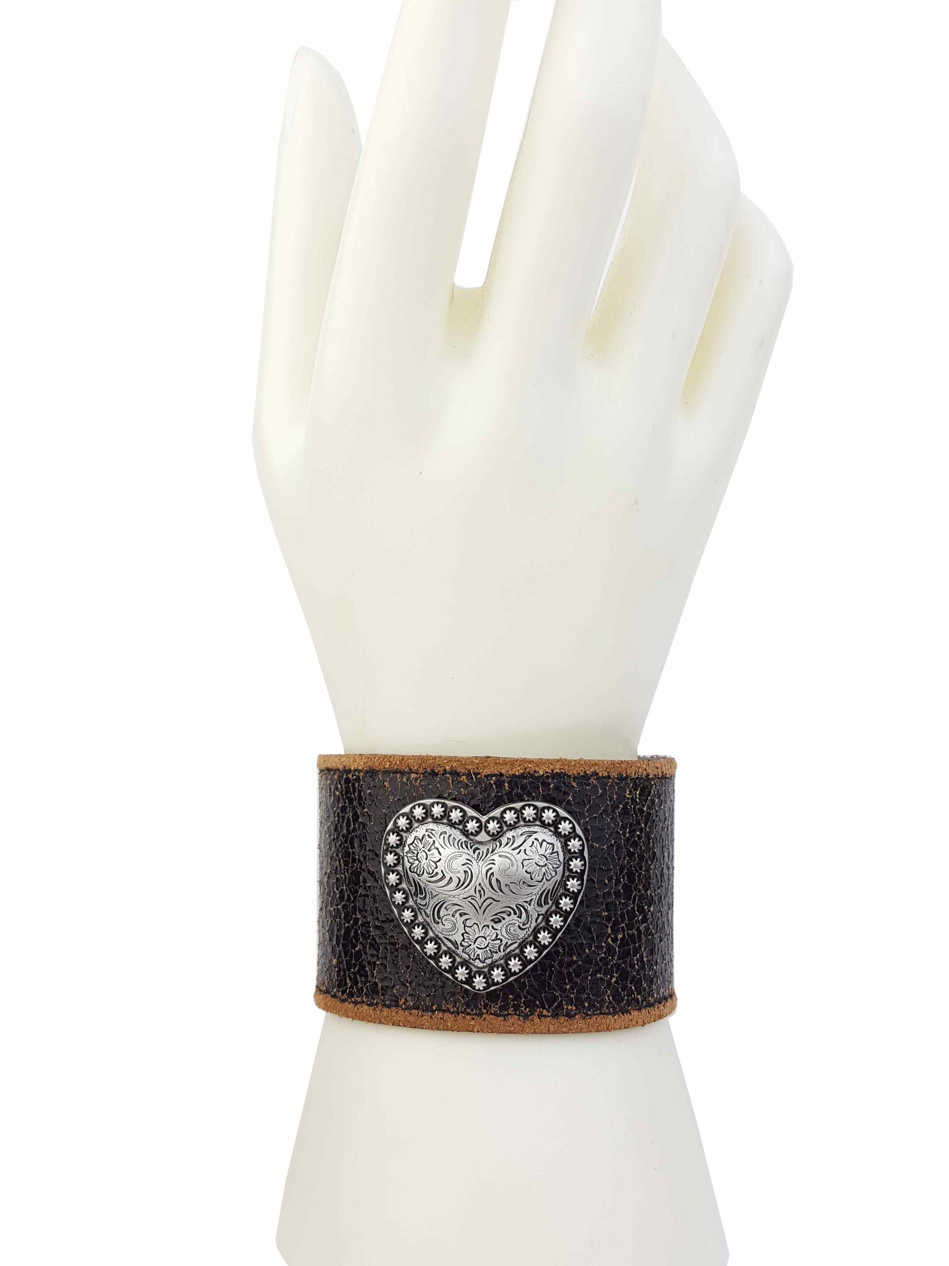 Bracelet: Vintage w. Distressed Leather Band w. Heart Concho