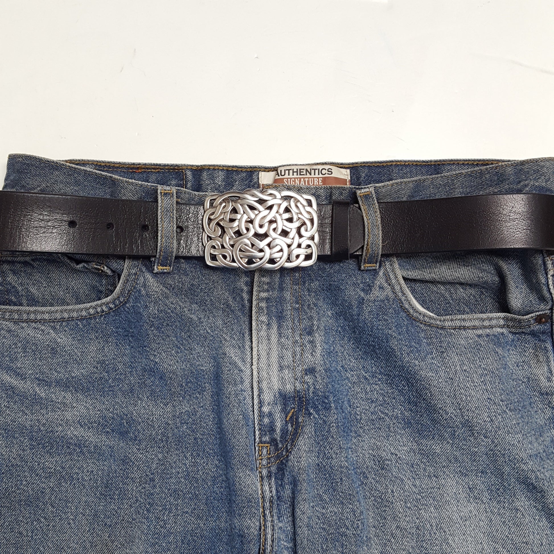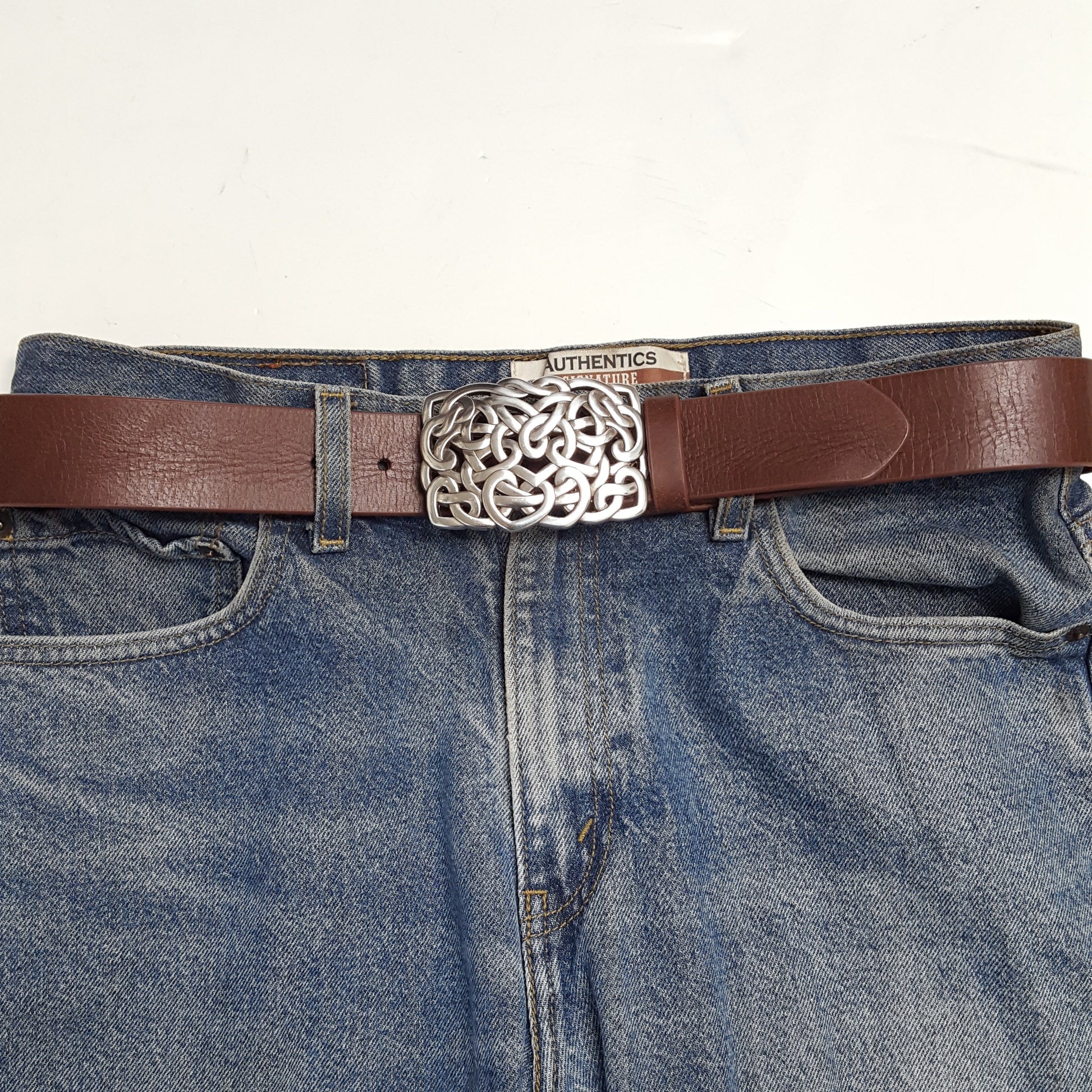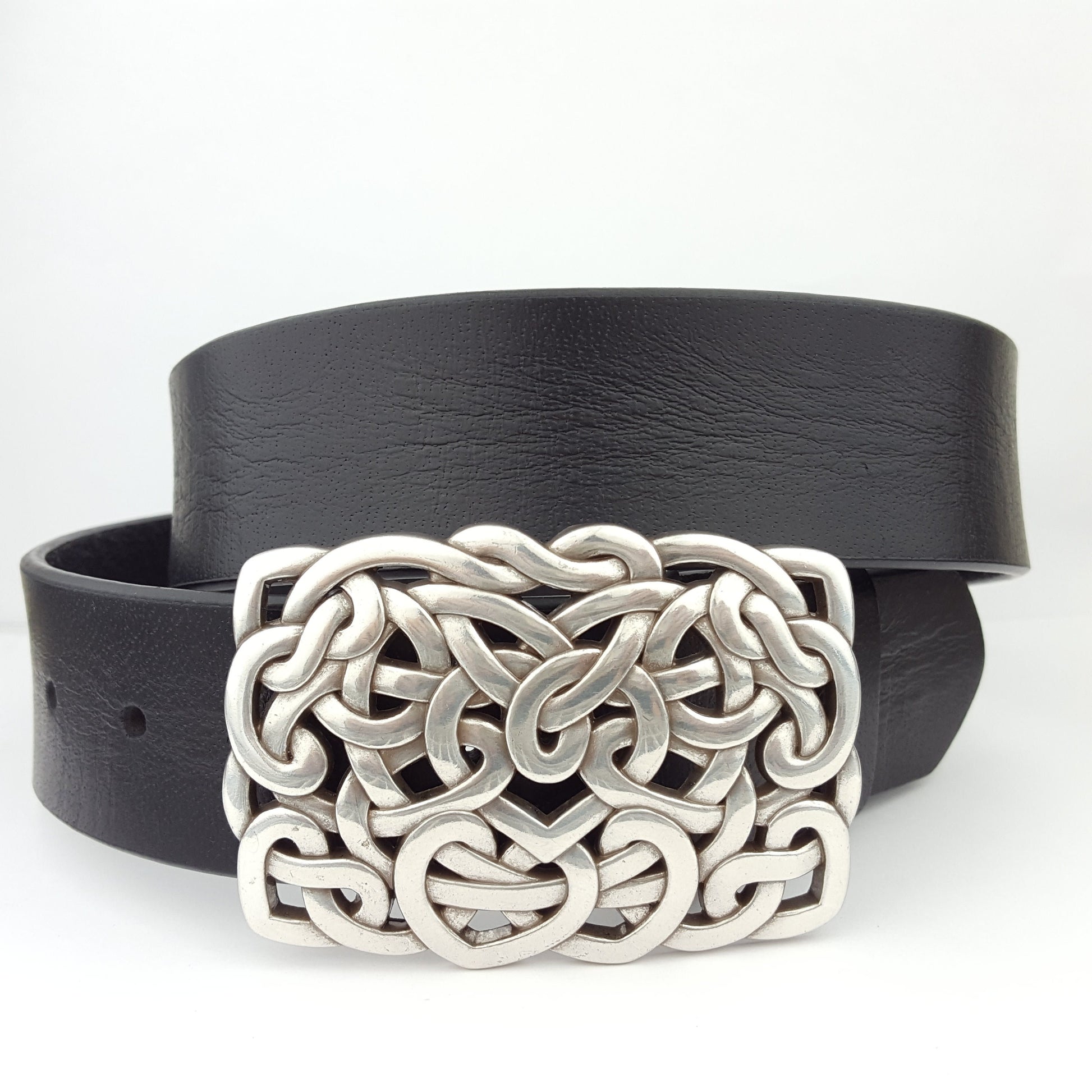 Belt: Genuine Leather Belt Strap w. Western Silver Heart Knotted Buckle