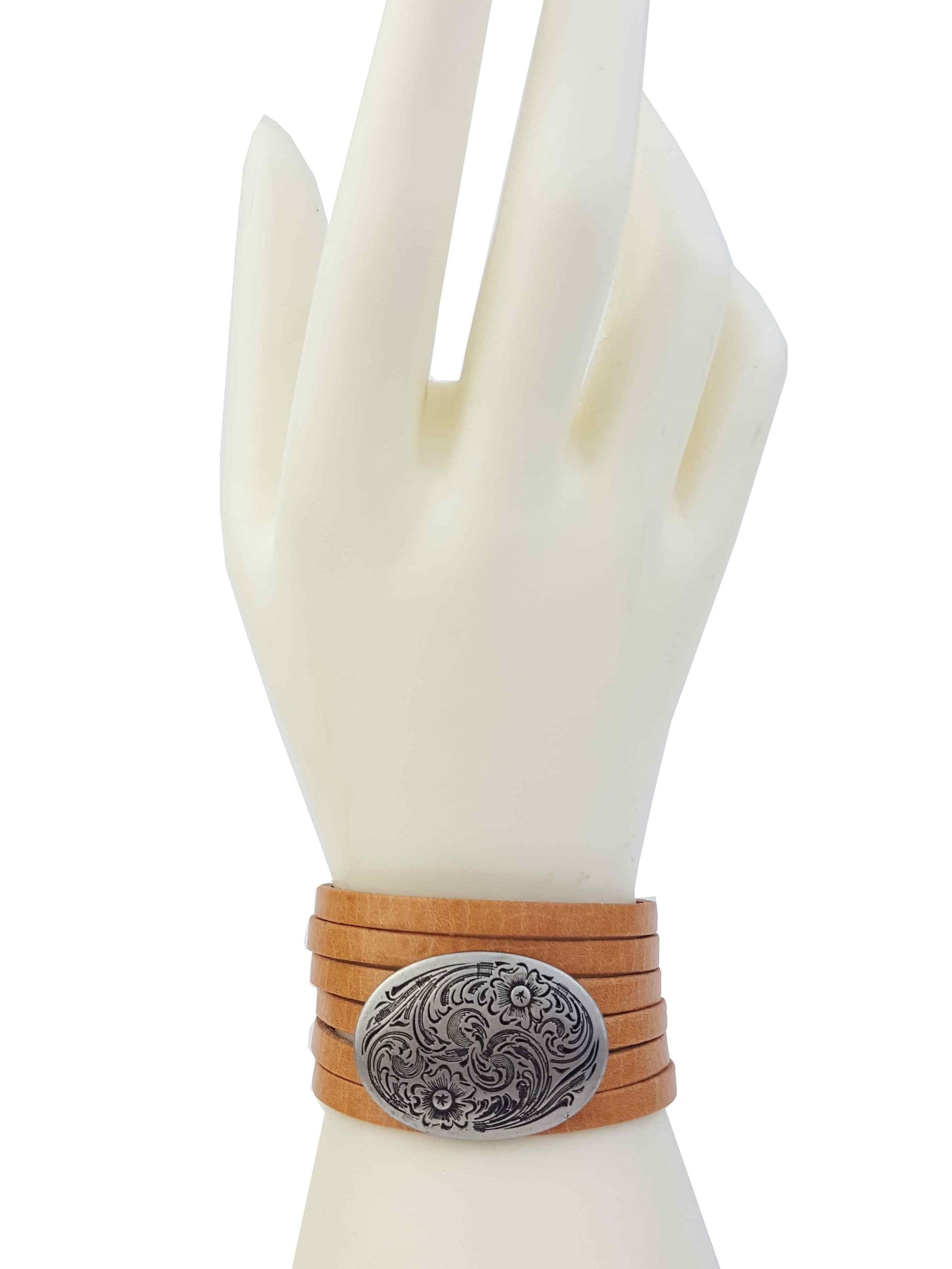Bracelet Sale: Genuine Leather Cuff Western Oval Concho