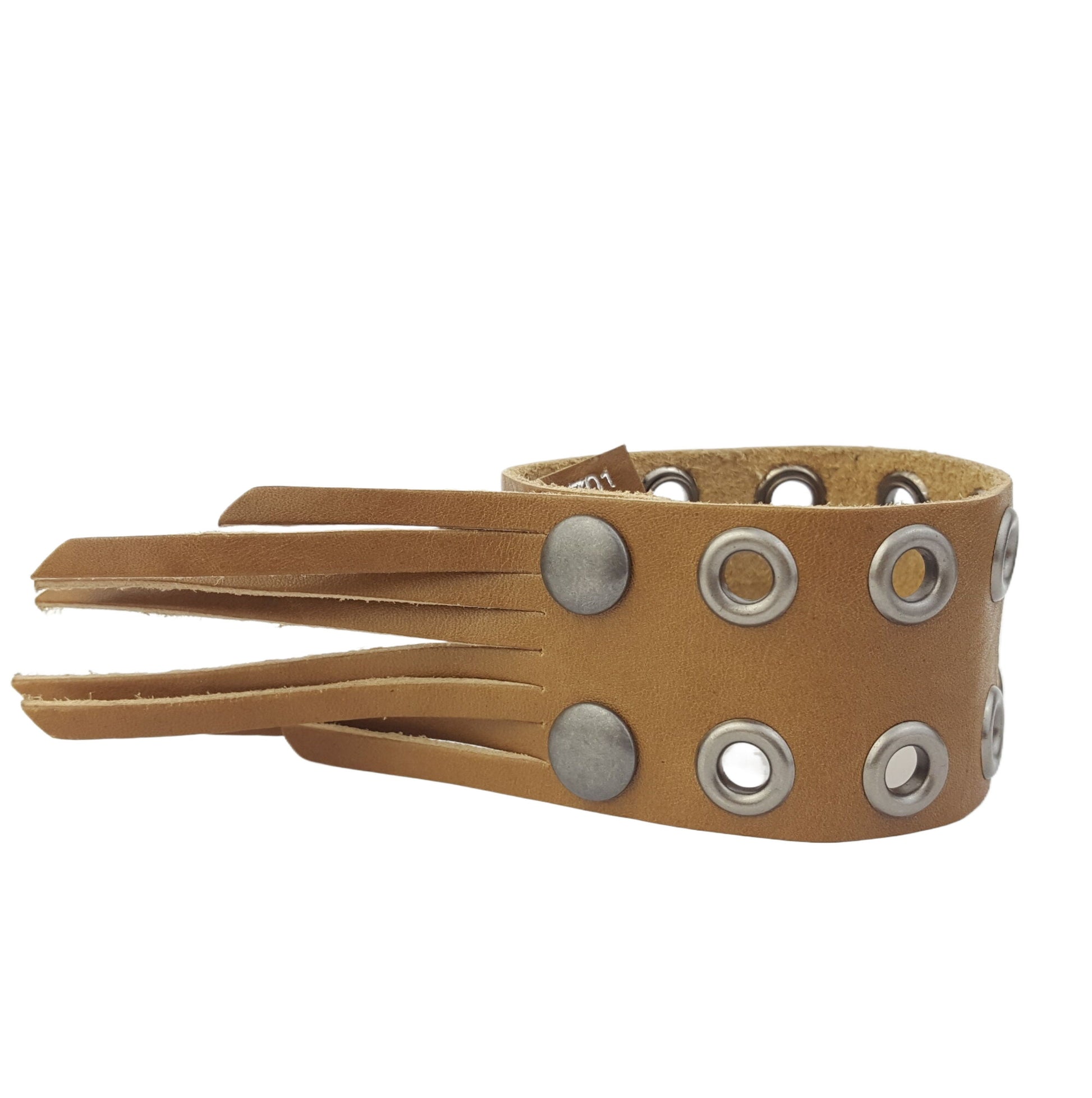 Bracelet: Leather Cuff with Fringe and Eyelets