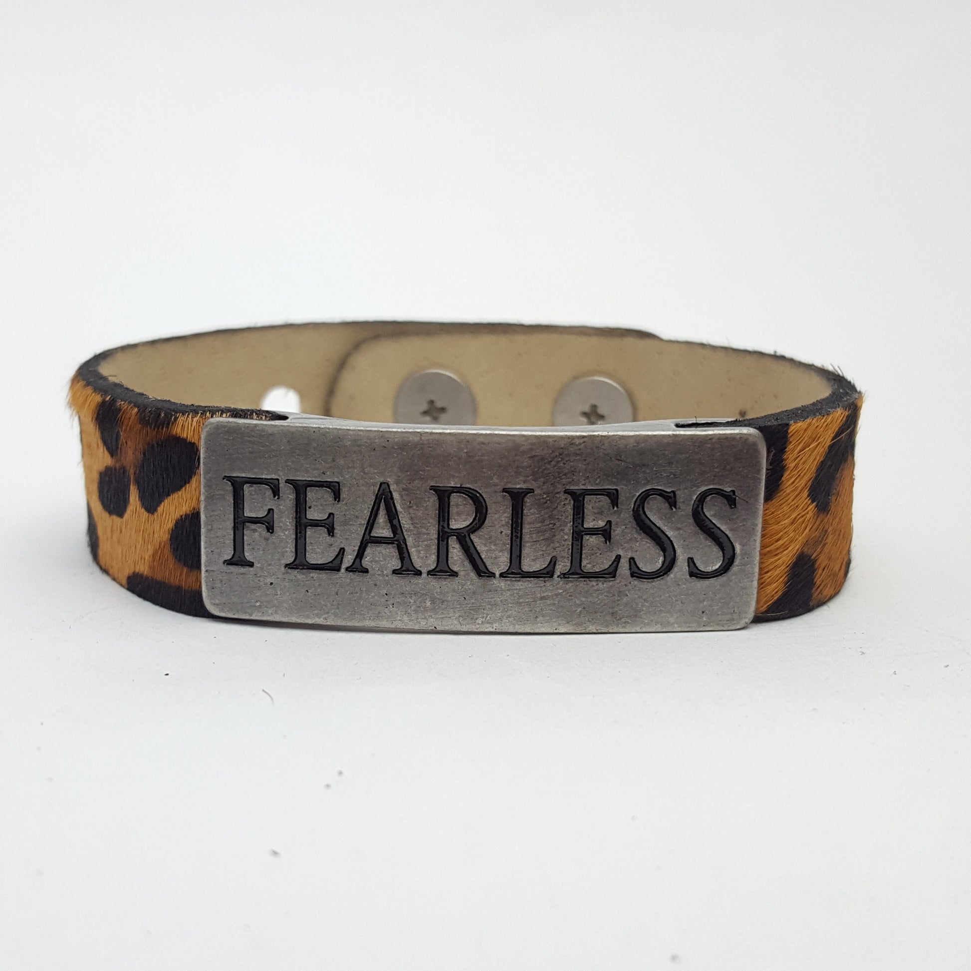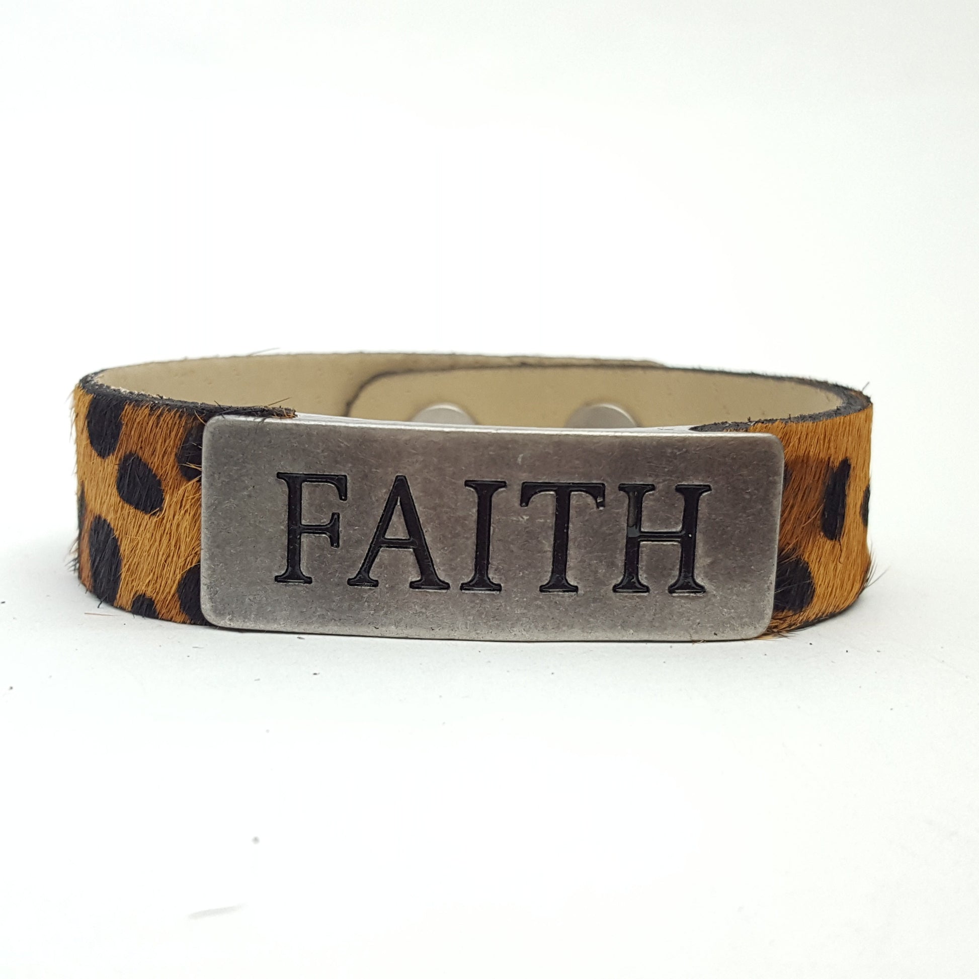 Bracelet Sale: Leopard Hair on Calf Leather wristband Inspired Words