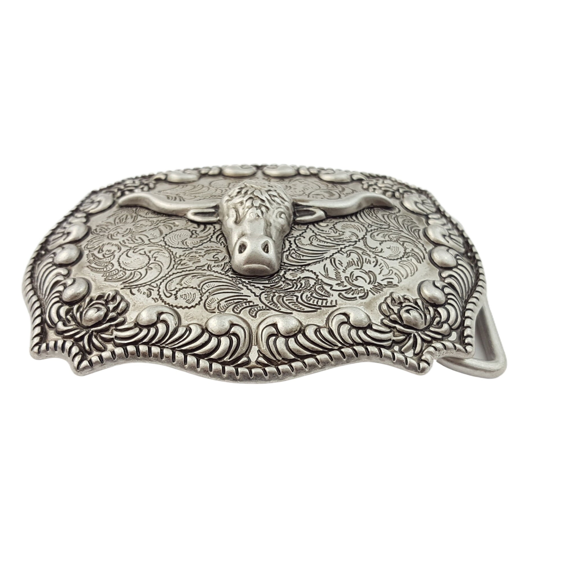 Buckle: Western Antique Silver Long Horn Design Belt Buckle