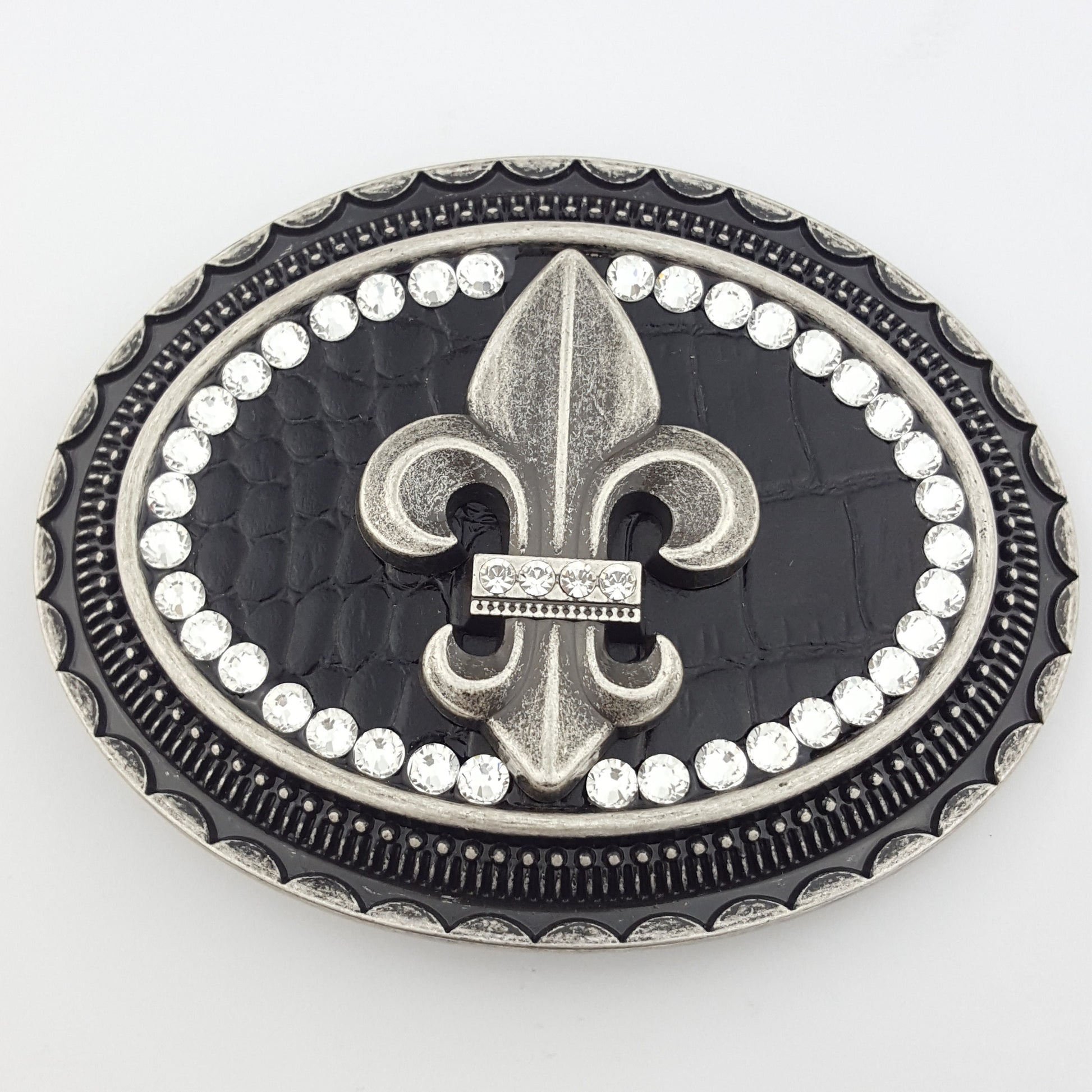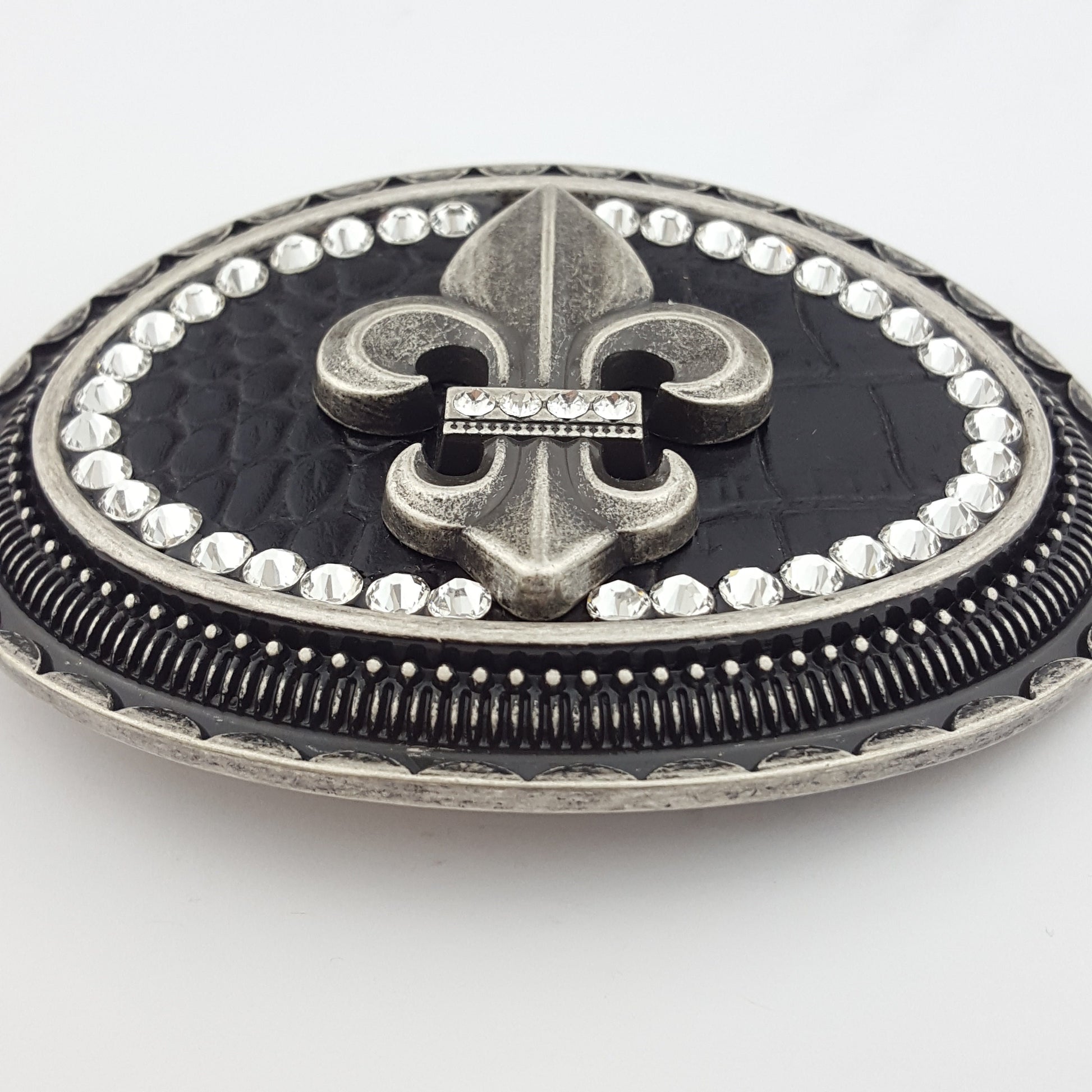 Buckle: Western Oval Belt Buckle with Fleur De Lis and Crystals