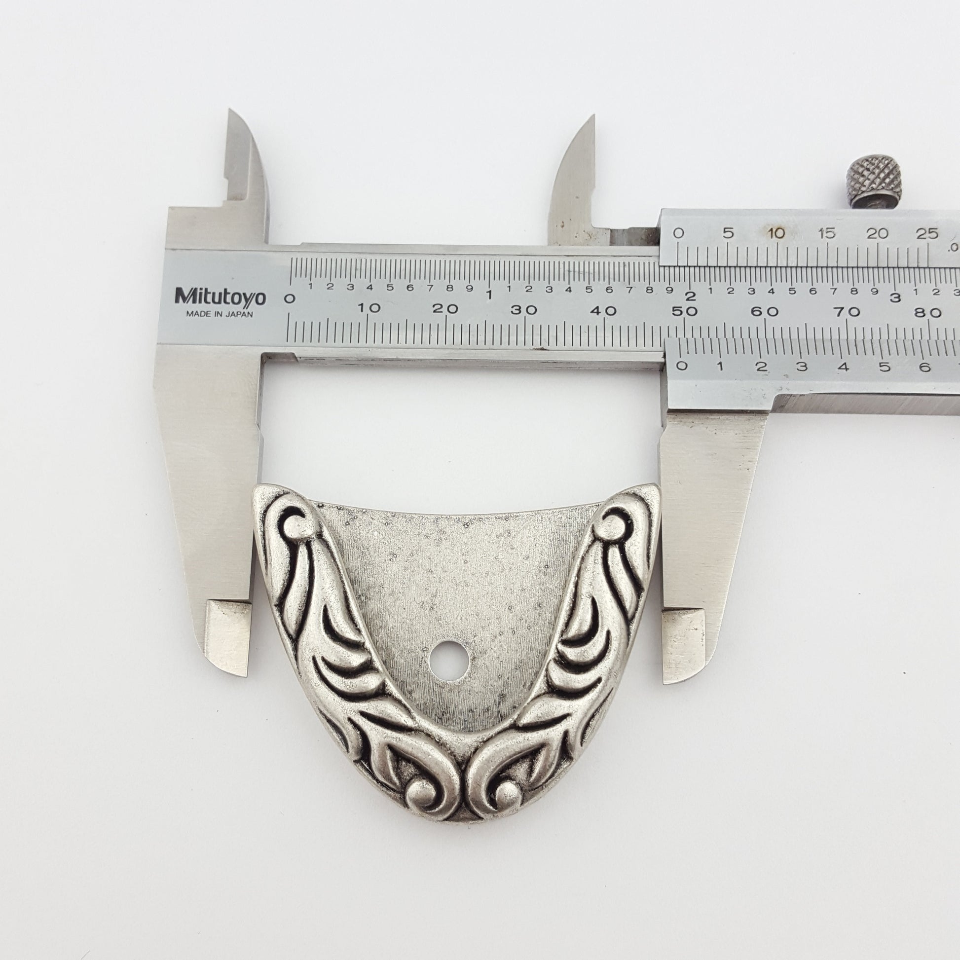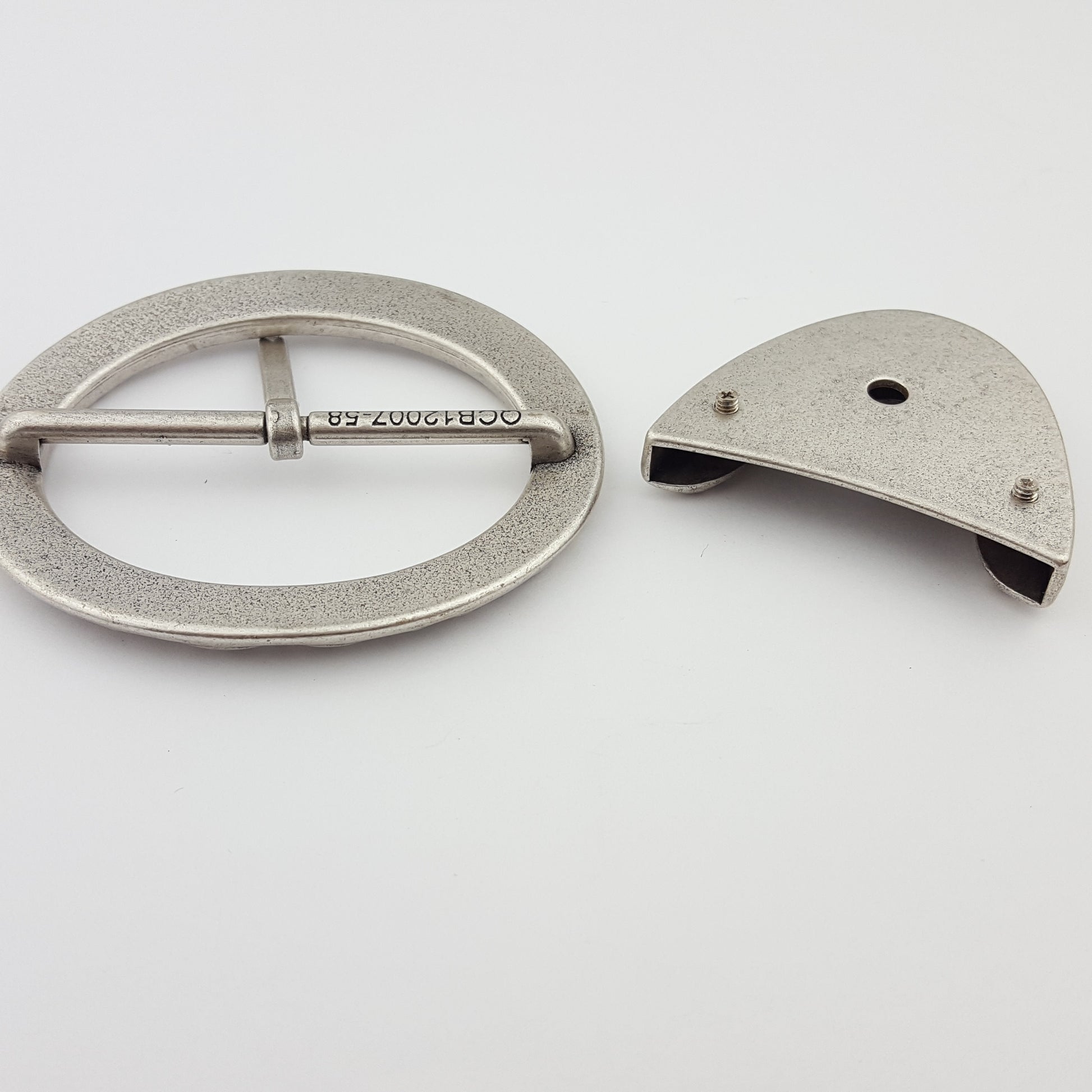 Buckle in an oval shape. Dimension of buckle is 2.6" x 3"